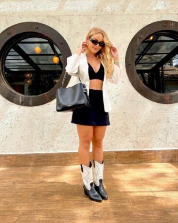 Western – Uma tendência que tomou conta de 2023 são as botas western! Conhecida pelo bico fino e seus desenhos bordados na lateral, a peça ajuda a criar um visual moderno com referências ao passado. Para fugir do óbvio, o truque é selecionar versões atualizadas da bota, como a P&B ou a metalizada.