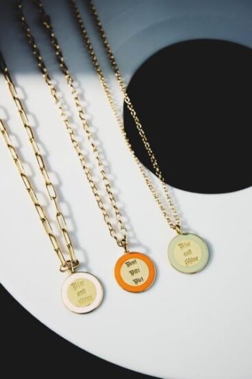 O ponto de partida da coleção são as medalhas personalizáveis, idealizadas por Anttónia. Cada peça traz frases escolhidas pela artista, além de uma paleta de cores desenvolvida a quatro mãos, permitindo que cada cliente personalize sua peça criando combinações únicas. As medalhas podem ser usadas tanto com correntes quanto com cordões de cetim.