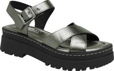Sandália plataforma tratorada metalizada