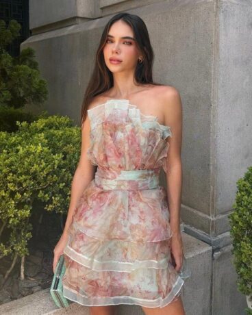 Estampa florida – Para quem recebeu mais liberdade na escolha do vestido, existem algumas estampas elegantes e seguras. Atemporal, a estampa florida surge desta vez em desenhos mais abstratos, semelhante a uma pintura aquarela. Essa característica torna a composição adequada para o casamento, já que é sutil e elegante, ao invés de intensa. Minha dica: um vestido florido, com aplicação de babados, para criar ainda mais movimento e elegância para a ocasião!