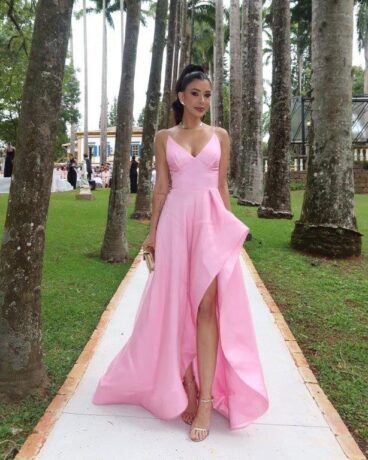 Rosa e violeta – Tons rosados ganham destaque nas cerimônias deste ano! O rosa e o violeta, além de versáteis, transmitem romantismo e delicadeza – o primeiro é perfeito para os eventos mais tradicionais e diurnos, enquanto o tom de roxo combina com a noite. Elementos como babados verticais ou pontos de luz vão valorizar ainda mais a peça.