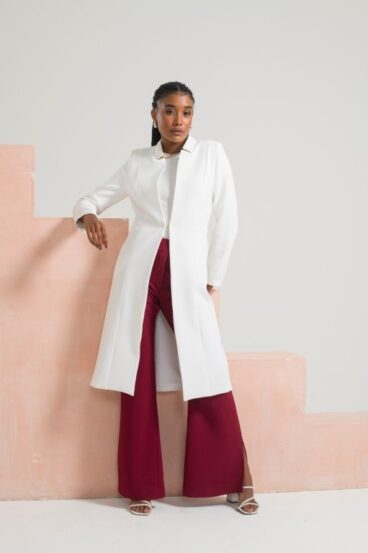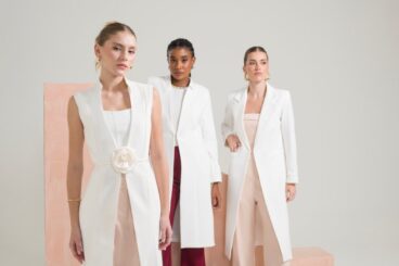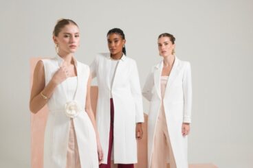 O Jaleco Feminino Paloma carrega lapela, bolsos embutidos, detalhe no punho com galão no próprio tecido e aviamento em metal dourado. Já o Jaleco Feminino Eloá, não possui mangas, tem gola alta, bolsos laterais, fechamento por gancho, broche e cordão removível para ser utilizado de diversas maneiras. Por fim, o Jaleco Feminino Serena conta com gola invertida, bolsos laterais, detalhe do gorgurão monocromático no punho e fechamento por gancho.