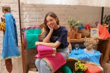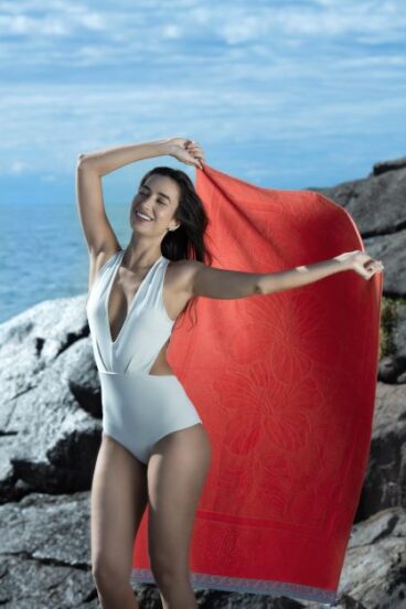 Neta de Antônio Ogliari, fundador da Atlântica Cama e Banho, Ana Júlia Ogliari vivencia o universo têxtil desde a infância. Ainda pequena, foi modelo de várias campanhas de lançamento de toalhas e roupões da marca. Aos 15 anos, passou a cumprir rotina semanal na empresa, conhecendo o processo criativo, da estrutura ao desenho, até chegar ao produto final. Hoje, aos 18 anos, especializando-se no design gráfico, tem suas ideias materializadas, com a criação de sua primeira linha de produtos. Com design autoral, Ana Júlia assina a coleção de Toalhas de Praia Encontros. Fotoa: Luana Schlindwein e Mauro Vopara